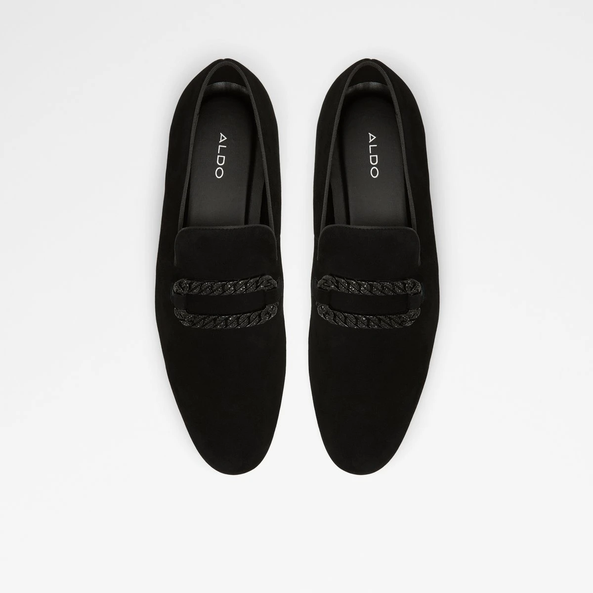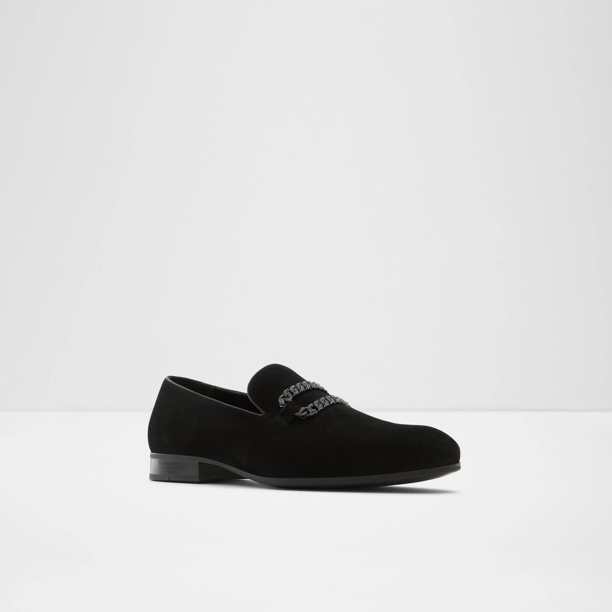 Equipped with moulded foam for ultimate comfort, these luxe suede loafers with a decorative chain are ready to stand out.