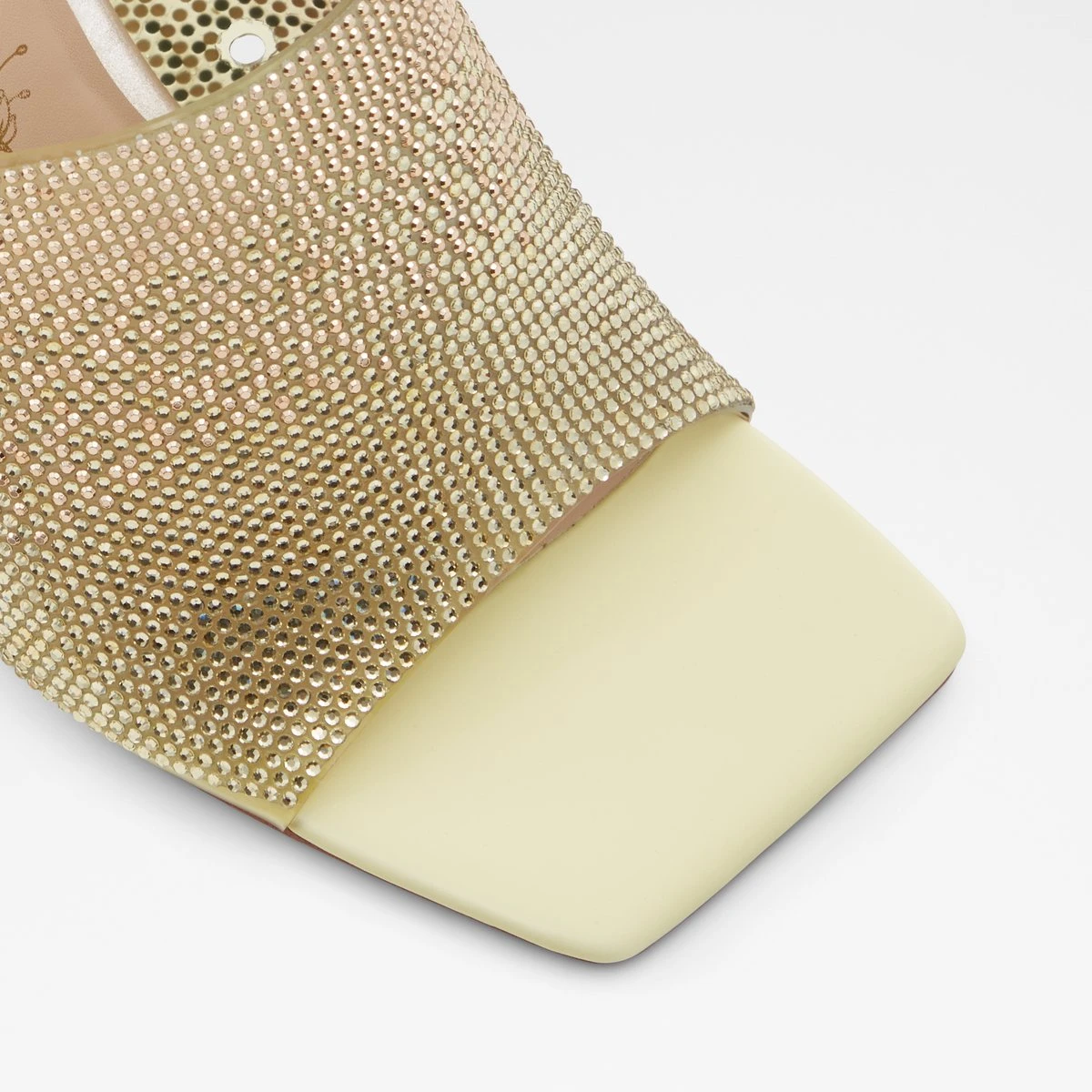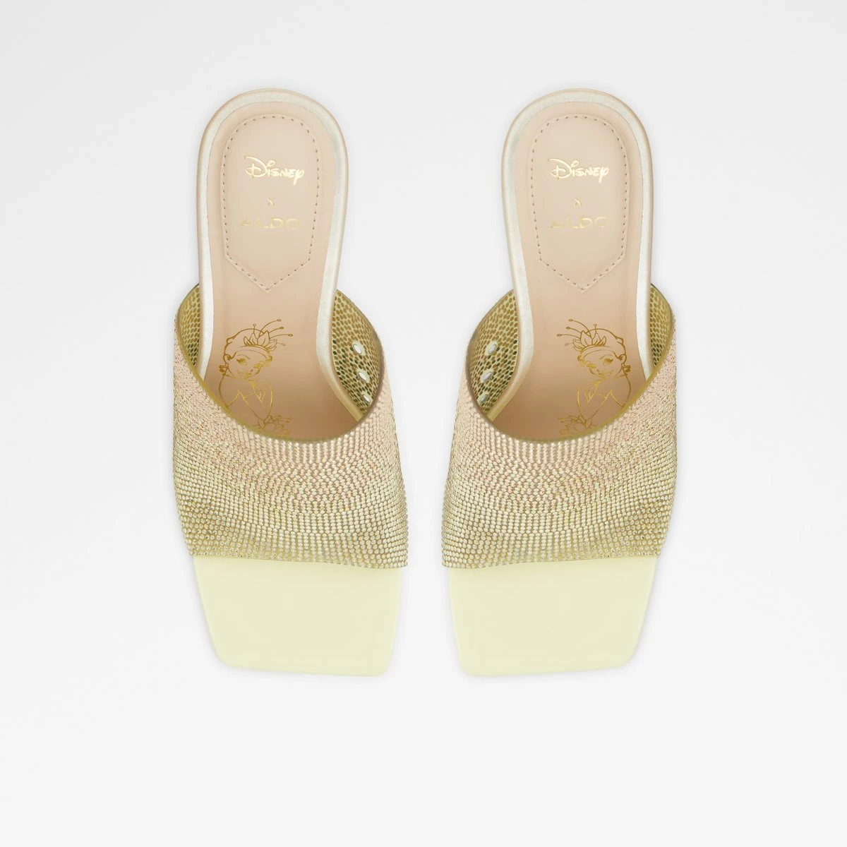 Slip into these standout high heel mules in a glittering gold ombre with a chic square toe, and walk with confidence into your own modern fairytale.